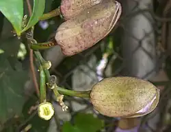 Die ledrige, zweifächerige Kapselfrucht ist bei einem Durchmesser von etwa 1,5 Zentimeter kugelig, läuft an ihrer Spitze in einem 2 bis 5 Zentimeter langen Schnabel aus und besitzt normale Haare sowie kurze Drüsenhaare. Die bis zu 1 Zentimeter langen, flachen Samen sind auf einer Seite skulptiert.
