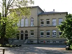 An der Rückseite zum Schulhof hin steht geschrieben: