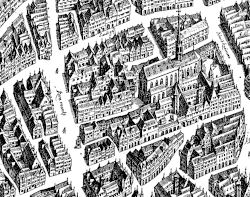 Allerdings erstreckte sich der vorgenannte Erker in beiden Bildern in einer für die Gotik typischen, schlanken und emporstrebenden Form von etwa der halben Höhe des ersten Stocks bis über den Dachbereich hinaus und schloss hier mit einem Spitzhelm. Dies wird durch den Stadtplan Matthäus Merians von 1628 trotz ungünstiger Perspektive bestätigt, so dass zumindest das Erscheinungsbild des Erkers als gesichert betrachtet werden kann.