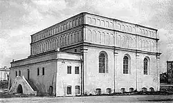 An den Seiten befanden sich niedrigere Anbauten für die Frauenräume. Im Eingangsbereich im Westen gab es einen (später errichteten) zweistöckigen Vorbau im Barockstil. Diese Anbauten wurden im Zweiten Weltkrieg zerstört.