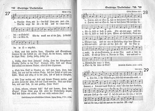 - ↑ Katholisches Gesangbuch, auf allerhöchsten Befehl Ihrer k. k. apostolischen Majestät Marien Theresiens zum Druck befördert. Verlag der Katechetischen Bibliothek, Wien 1776.