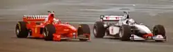 Allerdings wurde zwei Runden vor Schluss eine Stop-and-Go-Strafe gegen Michael Schumacher ausgesprochen, weil er während der Safety-Car-Phase Wurz überrundet hatte. Michael Schumacher hatte drei Runden Zeit, die Strafe abzusitzen, und tat dies in der letzten Runde. Jedoch überquerte er dadurch die Ziellinie in der Boxengasse, bevor er seinen Boxenplatz erreichte. Dadurch gewann Michael Schumacher das Rennen, bevor er seine Strafe ordnungsgemäß abgesessen hatte. Es gab Beschwerden auf beiden Seiten, Ferrari argumentierte, dass die Nachricht der Bestrafung erst 31 Minuten nach dem Vorfall handgeschrieben mitgeteilt wurde. Dadurch wurde die normale Frist um sechs Minuten übertroffen und die handgeschriebene Nachricht war nicht eindeutig formuliert. So war nicht klar, ob eine Stop-and-Go-Strafe verhängt wurde oder der Rennzeit von Michael Schumacher am Ende des Rennens zehn Sekunden addiert würden. Letzteres wurde dann nach dem Rennen verhängt; allerdings war dies unzulässig, da eine derartige Strafe nur bei einem Vorfall zwölf Runden vor dem Ende des Rennens vergeben werden dürfte. Nachdem dies nun auch als ungültig angesehen wurde, wurde die Strafe von Michael Schumacher aufgehoben und nicht weiter verfolgt. McLaren legte daraufhin Protest mit der Begründung ein, die Strafe sei nicht korrekt ausgeführt worden. Der Protest wurde in der letzten Instanz von der FIA abgelehnt.[5] Das Podium komplettierten Häkkinen und Irvine. Für Wurz, der das Rennen als Vierter beendete, sollte dies die letzte Punkteplatzierung des Jahres bleiben. Fünfter wurde Fisichella, Sechster Ralf Schumacher, welcher somit seinen ersten WM-Punkt erhielt.