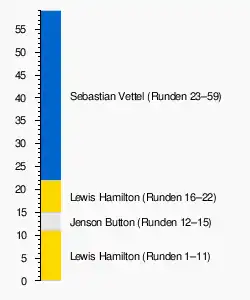 - ↑ Webber wurde nach dem Rennen mit einer Zeitstrafe von 20 Sekunden belegt, da er durch das Verlassen der Strecke einen Vorteil erhalten hatte.