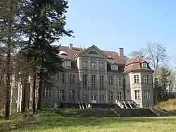 Die Architektur und die Wahl des Materials stehen in Übereinstimmung mit dem Hauptgebäude und bilden mit diesem eine Einheit. Diese Einheit ging zwischenzeitlich verloren; das Gebäude erhielt eine eigene Zuwegung und wurde zu einem reinen Wohnhaus umgebaut. 2021 wurden Stallgebäude und Wirtschaftshof zusammen mit dem Palais verkauft.[15]