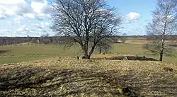 In der Nähe befinden sich die Reste einer zerstörten Flachsdarre, ein Domarring (14 m Durchmesser und 13 Steine) und der Runenstein Vg 139 an der Kirche von Vårkumla.