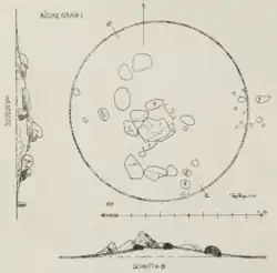 Das Grab war oval und hatte eine Länge von 12 m sowie eine Breite von 3,2 m. Es besaß eine Umfassung, die bei der Aufnahme durch Müller und Reimers im ausgehenden 19. Jahrhundert noch aus 18 Steinen bestand.