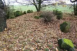 - ↑ Diese in Mecklenburg-Vorpommern häufiger anzutreffende Steinabdeckung (kein Steinhügel oder eine Röse) ist eine dünne Steinlage aus Rollsteinen auf einem Erdhügel, die die Erosion verhindern, oder die Optik eines Steinhügels vermitteln sollte