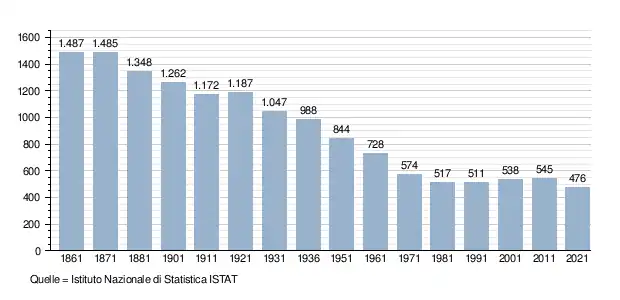 - ↑ Bilancio demografico e popolazione residente per sesso al 31 dicembre 2024. ISTAT. (Bevölkerungsstatistiken des Istituto Nazionale di Statistica, Stand 31. Dezember 2024).