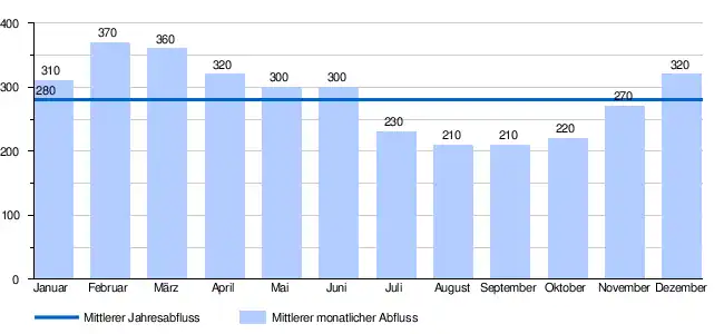 - ↑ Die modellierte mittlere Abflussmenge von 280 l/s widerspricht den Pegeldaten von 303 l/s.