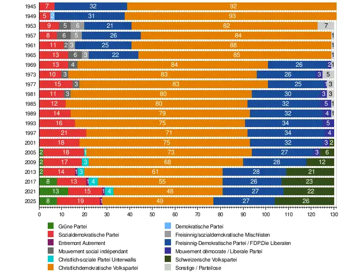 - ↑ Kanton Wallis: nationale und kantonale Wahlen seit 1919. Bundesamt für Statistik, 6. März 2017, abgerufen am 8. Juli 2021.