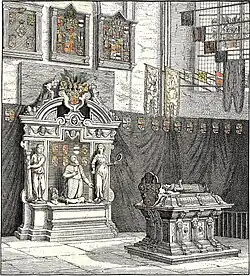 Wilhelm Ludwig, Statthalter von Friesland, ließ unter dem Chor der Kirche einen Grabkeller für seine Ehefrau Anna von Oranien-Nassau einrichten, die schon knapp sieben Monate nach der Hochzeit starb. Der Bildhauer Johan Schoorman aus Gent wurde beauftragt, das Grabmal über dem Grabkeller zu gestalten. Der Sockel bestand aus schwarzem Marmor, darauf Anna dargestellt als Gisant in weißem Alabaster. Wilhelm Ludwig wurde 1620 neben seiner Frau bestattet. Ihm zu Ehren wurde nach einem Entwurf von Pieter Hendrickszoon de Keyzer, dem Sohn Hendrick de Keysers, ein Monument an der Nordmauer des Chores erstellt.