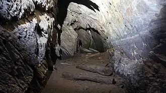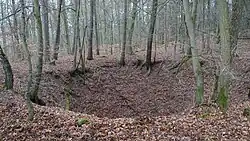 - Tiefer Stollen, um 1775 begonnen,[22] wieder erwähnt 1855. Länge 69 m, erreichte nie das Abbaugebiet und konnte auch nicht zur Wasserlösung beitragen. Das Mundloch ist noch erhalten, allerdings verrohrt. Liegt auf Cleeberger Gemarkung. Mundloch: Lage[7]