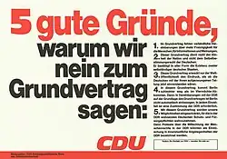 Der Grundlagenvertrag war politisch und rechtlich umstritten. Die CDU/CSU-Fraktion hatte Vorbehalte gegen den Vertrag, da er wesentliche Punkte nicht enthielt: Zum Beispiel wurde er nicht unter den Vorbehalt eines anzustrebenden Friedensvertrags gestellt, es wurden keine Regelungen über den Status von Berlin getroffen, und die Rechte und Verantwortlichkeiten der Vier Mächte wurden nicht erwähnt. Die menschlichen Erleichterungen würden nicht ausreichend abgesichert und Begriffe wie Einheit der Nation, Freiheit und Menschenrechte würden nicht oder nur ungenügend behandelt.