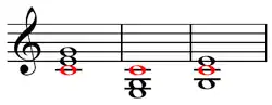 Im Generalbass und teils auch in der Harmonielehre gilt als Grundton eines Akkords der tiefste Ton seiner Grundstellung, in welcher er aus aufeinandergeschichteten Terzen besteht.[2] Während bei der Grundstellung Grund- und Basston identisch sind, ändert sich letzterer bei Umkehrung des Akkords, wogegen der Grundton gleich bleibt.