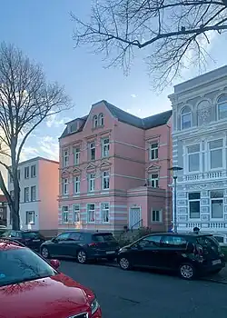 - Mehrfamilienhaus Kirchenpauerstraße 1: 3-gesch. Eckgebäude von 1906; Architekt: Richard Alberts, Nutzung: Der Paritätische Wohlfahrtsverband Cuxhaven