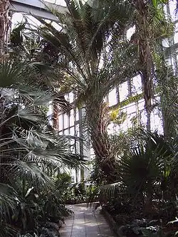 Das 16 Meter hohe Palmenhaus ist Standort für ca. 50 Palmenarten, Baum-Strelitzien und auch für den Riesenbambus. Ein im Haus befindlicher Baumkronenpfad ermöglicht es den Besuchern, bis in die Höhe der Baumwipfel aufzusteigen.