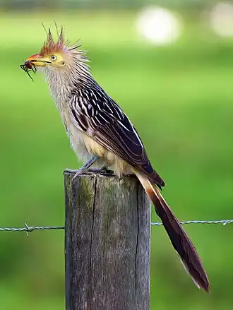 Der Guirakuckuck (Guira guira) gehört zu den Kuckucksvögeln und ist im östlichen Südamerika beheimatet. Er ist der einzige Vertreter der Gattung Guira und in Teilen seines Verbreitungsgebietes ein häufiger Vogel.[1] Gewöhnlich ist er in kleineren Trupps zu beobachten.[2] Berüchtigt ist der Vogel wegen seines strengen Körpergeruches.[3]