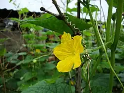 Die männlichen Blüten stehen zu mehreren in den Blattachseln, wobei jeweils immer nur eine in Blüte ist. Typischerweise sind von den jeweils fünf Staubblättern je zwei verwachsen, und eines steht frei. Dadurch sind die männlichen Blüten zygomorph. Die weiblichen Blüten stehen einzeln, meist verstreut an einzelnen Knoten, bei den gynodiözischen Sorten an jedem Knoten. Blütezeit ist in Mitteleuropa Juni bis August. Die Bestäubung erfolgt durch Insekten (Bienen, Grabwespen).