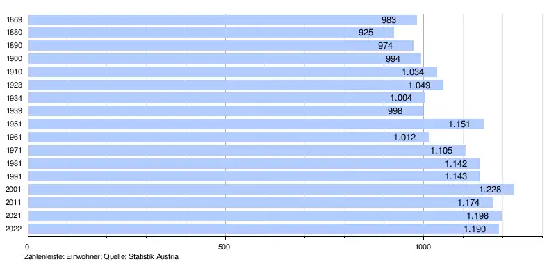 1991 hatte die Gemeinde laut Volkszählung 1.143 Einwohner, 2001 dann 1.228 Einwohner. Die Bevölkerungszahl stieg in diesen zehn Jahren an, da sowohl die Geburtenbilanz als auch die Wanderungsbilanz positiv waren. Von 2001 bis 2011 gab es eine starke Abwanderung, die durch die positive Geburtenbilanz nicht mehr aufgehoben werden konnte, sodass die Einwohnerzahl auf 1.187 Personen sank.[5]