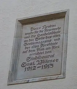 - ↑ Gustav Blümer: Der Neubau des Gymnasiums. In: Festschrift zur Einweihung des neuen Gymnasialgebäudes in Esslingen am 29. Juli 1910. Esslingen 1910, S. 53 ff. (Digitalisat)