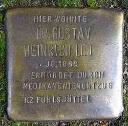 - Maria Koser: Dr. Gustav Heinrich Leo auf www.stolpersteine-hamburg.de, abgerufen am 13. Januar 2020