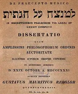 - 1831 De praecepto musico למנצח על הגתית (la-menaṣṣēaḥ ʿal hag-gittît) in inscriptionibus psalmorum VIII.LXXXI et LXXXIV conspicuo dissertatio. Dissertation OCLC 682374016
