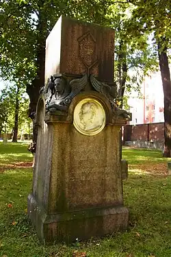 - ↑ s. dazu die Abhandlung Die Grabmäler des Historismus und der Reformkunst auf der Internetseite des Garnisonsfriedhofs ( des vom 14. Juli 2012 im Internet Archive) Info: Der Archivlink wurde automatisch eingesetzt und noch nicht geprüft. Bitte prüfe Original- und Archivlink gemäß Anleitung und entferne dann diesen Hinweis.