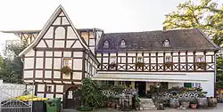 Der zweigeschossige Ursprungsbau von 1656 ist eine in Stockwerkbauweise errichtete Winkelhofanlage. Das Erdgeschoss ist verputzt (ursprünglich in Fachwerk), das Obergeschoss mit Zierfachwerk ausgestattet. Das Gebäude ist teilweise unterkellert und verfügt außerdem über einen unter der Wiesenfläche befindlichen, mittelalterlichen Gewölbekeller. Eine südliche, dreigeschossige Erweiterung des an der Traufseite liegenden Hauses stammt aus dem Ende des 19. Jahrhunderts und ist ein verputztes Fachwerkhaus. Zur Giebelseite trägt es im reich verzierten Dachgeschoss einen hölzernen Balkon. Auf die gleiche Zeit gehen eine sich an das Haupthaus anschließende Terrasse sowie dessen innere Umgestaltung zur Gaststätte zurück.