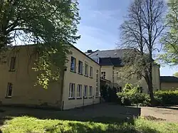 Die Turnhalle sowie der nördliche Anbau sind schlichte Zweckbauten mit einem jeweils rechteckigen Grundriss und schlichten, hochrechteckigen Fenstern. Der ehemalige Gutspark ist nur noch in Resten erhalten geblieben.