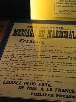 Am 22. Oktober 1941 wurde der erst 17 Jahre alte Guy Môquet zusammen mit 26 Mithäftlingen in Châteaubriant von deutschen Soldaten erschossen. Unter den Opfern befanden sich auch die Kommunisten Charles Michels und Jean-Pierre Timbaud; Guy Môquet war das jüngste der Opfer.