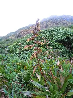 Guzmania rubroluteaRauh: Sie gedeiht in einer Höhenlage von etwa 1300 Meter in Ecuador.[1]