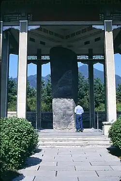 Die Stele ist aus einem etwa 7 Meter hohen monolithischen Block gebildet. Sie hat einen ungefähr quadratischen Querschnitt und einen Umfang von etwa 4 Metern. Auf allen vier Seiten ist sie fast vollständig mit eingeritzten chinesischen Schriftzeichen in klassischem Chinesisch versehen, insgesamt etwa 1800. Zu ihrem Schutz ist die Stele von einem Pavillon umgeben.