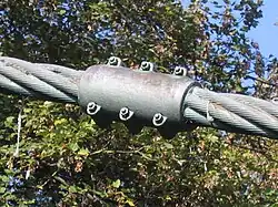 Ungefähr 20 Meter außerhalb der Brücke sind die vier begehbaren Ankerkammern zur Verankerung der Kabel in den Baugrund gebaut. Durch ein Zwischenlager erfährt das Kabel im Schacht eine Umlenkung. Der Seilkopf (Ende des Seils) ist durch einen T-Träger und eine Gurtplatte gegen Mauerwerk verspannt.