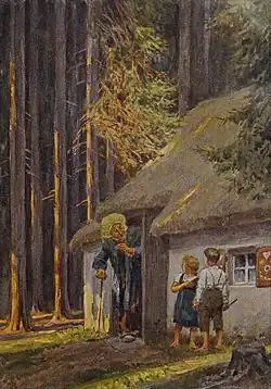 - ↑ Originalzitat der Brüder Grimm, gleichlautender Text in den Ausgaben der KHM 1812, 1819, 1837, 1840, 1843, 1850 und 1857, Hänsel und Gretel auf Wikisource. Siehe auch „Ausgabe letzter Hand“ von 1857, Philipp Reclam, Stuttgart 2007, S. 104.