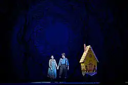 2017 bettete die Regisseurin Brigitte Fassbaender in ihrer Inszenierung am Staatstheater Braunschweig[5] die Oper in eine per Video im Vorspiel und Zwischenspiel eingespielte Rahmenhandlung ein, die die Handlung vom Wald in ein monumentales Hotel Ilsestein verlegte.[6] Der Film von Grigory Shklyar zeigte Szenen mit Kindern, die mit dem Zug zum Hotel reisen im Stil einer Kinderlandverschickung. Die Hexe wird als transvestite Gouvernante dargestellt, die sich im Schlachthaus als Menschenfresser entpuppt.[7]