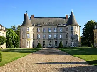 - im Jahr 1722 unter Benutzung eines älteren Baus errichtete, zwischen 1765 und 1771 erneuerte Schloss mit vier Ecktürmen, 1900 von der Familie Bamberger erworben und nach wechselvollem Geschick um 1975 an die Gemeinde übergegangen, 1960 als Monument historique klassifiziert[1]