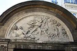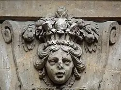 Das Eingangsportal wurde von dem Bildhauer Thomas Regnaudin (1622–1706) gestaltet. Auf dem Tympanon sind zwei sitzende Famen dargestellt, auf den beiden Türflügeln zwei Medusenhäupter, darüber Engel mit Wappenkartuschen und von Medaillons umrahmte allegorische Figuren. Das Tympanon der Innenseite des Portals stellt dar, wie der Hirte Faustulus die Zwillinge Romulus und Remus auffindet, die von einer Wölfin gesäugt werden. Auch die Innenseiten der Türflügel sind mit Reliefs allegorischer Figuren verziert.
