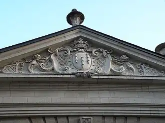 An der Rue du Chapitre wurde 1730 ein neuer Torbogen errichtet. Er enthielt eine Wohnstube für den Torwächter (Schweizer genannt) und zeigt im Giebelfeld das Familienwappen der La Bourdonnaye, verbunden mit einem Monogramm aus deren Initialen. Das Giebelfeld sollte auch in Marmor graviert in goldenen Lettern den Namen "Hôtel de Blossac" tragen.[24]