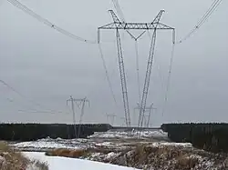 Als Höchstspannungsleitungen werden technisch genutzte elektrische Leitungen im oberen Hochspannungsbereich bezeichnet. In der elektrischen Energietechnik zählen in Deutschland die Spannungsebenen 220 kV und 380 kV zur Höchstspannung.[1][2] Außerhalb der elektrischen Netze werden Spannungen ab 300 kV (300.000 Volt) als Höchstspannung bezeichnet, wobei dafür kein einheitlicher Grenzwert festgelegt ist.[3] Möglichst hohe Spannungen werden gewählt, um die Übertragungsverluste bei langen Transportwegen zu minimieren. Typische Werte der Betriebskapazitäten bei 380-kV-Hochspannungsleitungen liegen in der Größenordnung von 5 nF/km bis 10 nF/km, bei niedrigeren Spannungsebenen sind höhere Werte üblich. Das 380-kV-Netz wird daher fast ausschließlich in Form von Freileitungen realisiert, Erdkabel mit ihrem hohen Kapazitätsbelag kommen nur in Ausnahmefällen und auf kurzen Strecken zur Anwendung.
