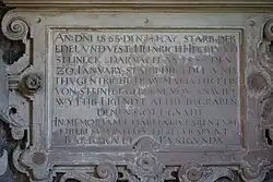 Johann Heinrich Hoecklin(† 1563) von Steineck wurde nebst seiner Gemahlin Maria von Anweil († 1586) in der Kirche zu Schopfheim beigesetzt.