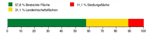 Es besteht zu 57,8 % aus bestockter Fläche, zu 31,1 % aus Landwirtschaftsfläche und zu 11,1 % aus Siedlungsfläche.