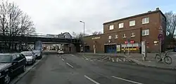 | Blick von der Pestalozzistraße südwärts; am linken Straßenrand sind die Gleise der Straßenbahn zu sehen | |