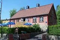 Der 1847 errichtete Røttergården, benannt nach dem Kaufmann Røtter, der hier ab 1850 sein Geschäft führte. Hier war auch das Postamt eingerichtet, bevor es ins Holterhuset umzog, und ab 1858 eine Telegrafenstation, eine der ersten in Norwegen. (Die Telegrafenlinie Christiania – Drammen war erst vier Jahre zuvor eingerichtet worden.) Der Künstler Jacob Sømme lebte um 1900 im Røttergården.[5]