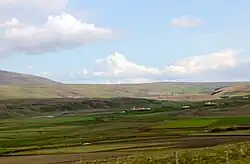 Am Miðfjörður steht auf dem Hof Melstaður die 1947 erbaute Melstaðakirkja mit einem massiven, weithin sichtbaren Turm und mit 150 Sitzplätzen.[8] Das Altargemälde von Magnús Jónssonstellt die Taufe Christi dar. Bereits vor der Reformation stand hier eine Kirche, die dem hl. Stefanus geweiht war.