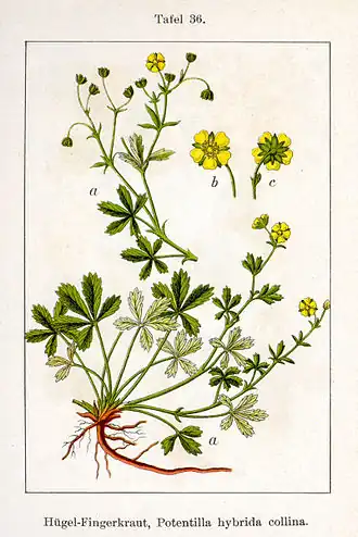 - Potentilla wimanniana Günther & Schummel (Syn.: Potentilla collina subsp. wiemanniana (Günther & Schummel) Dostál, Potentilla guentheri Spreng.)