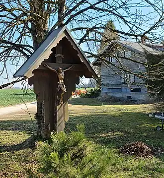 ![]() Wegkreuz am Ortsrand, rechts im Hintergrund das Wohnhaus Gut Hüll 2