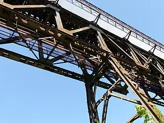 An beiden Brückenseiten sind Fußgängerstege montiert. Von 1920 bis 1922 wurde die Stahlkonstruktion aufgrund der zunehmend höheren Lasten durch Schienenfahrzeuge verstärkt. In den 1930er Jahren wurden die Nietverbindungen aufgrund von Ermüdungserscheinungen erneuert. Ende der 1960er Jahre erhielt die Brücke ihren letzten Anstrich.