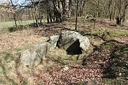 Südwestlich der Hünenbetten liegt in der Senke eines Hügels eine Steinkiste, von der nur der etwa zwei Meter lange Deckstein sichtbar ist. Es ist ein Schalenstein, der eine Anzahl von Schälchen aufweist.