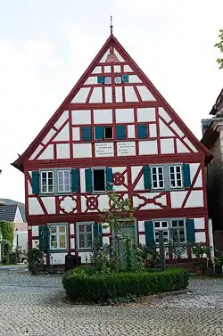 Das Fachwerk ist uneinheitlich gestaltet, was auf mehrere Bauphasen hinweist. Älteste Elemente aus dem 17. Jahrhundert sind die Zierformen des Fachwerks am Nordgiebel. Unter anderem sind hier geschweifte und genaste Andreaskreuze zu finden. Jünger ist der Südgiebel, der erst am Ende des 18. Jahrhunderts entstand. Um 1950 nahm man weitere Erneuerungen vor. Auf sie geht das engmaschige Fachwerk des nordseitigen Giebel zurück. Ebenso entstand das Erdgeschoss der Nordseite erst im 20. Jahrhundert.