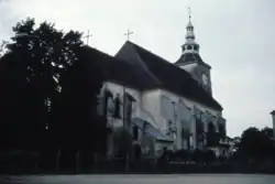 - Die evangelische Kirche[9] wurde 1807 nach dem Einsturz des Mittelschiffs in Folge eines Erdbebens von 1802 neu errichtet und steht unter Denkmalschutz.[8] Die Mauern der Kirchenburg wurden 1895 abgetragen womit die neue Schule und der große Saal errichtet wurden. Der Flügelaltar ist mit seiner Höhe von 4,78 Meter und einer Breite von 7,70 Meter einer der größten Flügelaltäre Siebenbürgens.[3] Die erste Orgel gab es zwischen 1709 und 1785, diese wurde mit einer neuen ersetzt, welche 1802 anlässlich des großen Erdbebens zerstört wurde, 1808 wurde eine neue Orgel eingebaut. Der alte Blasebalg der Orgel wurde 1939 durch ein elektrisches Gebläse ersetzt. Die heutigen Glocken werden seit 1982 elektrisch betrieben und klingen in einem DES-Dur-Geläute.[10]